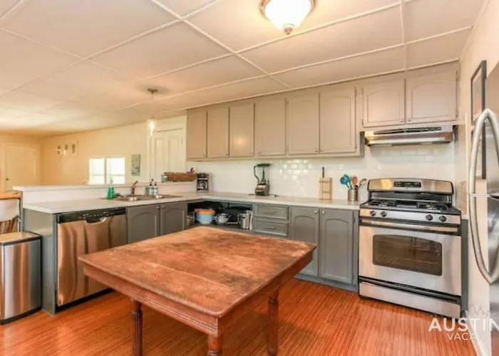 La cucina completamente attrezzata è dotata di un microonde, una macchina per caffè e tè e un frigo, in modo che gli ospiti possano cucinare i loro pasti. L'aeroporto Internazionale di Austin-Bergstrom è raggiungibile in 25 minuti d'auto da questo stabilimento con 4 camere da letto.